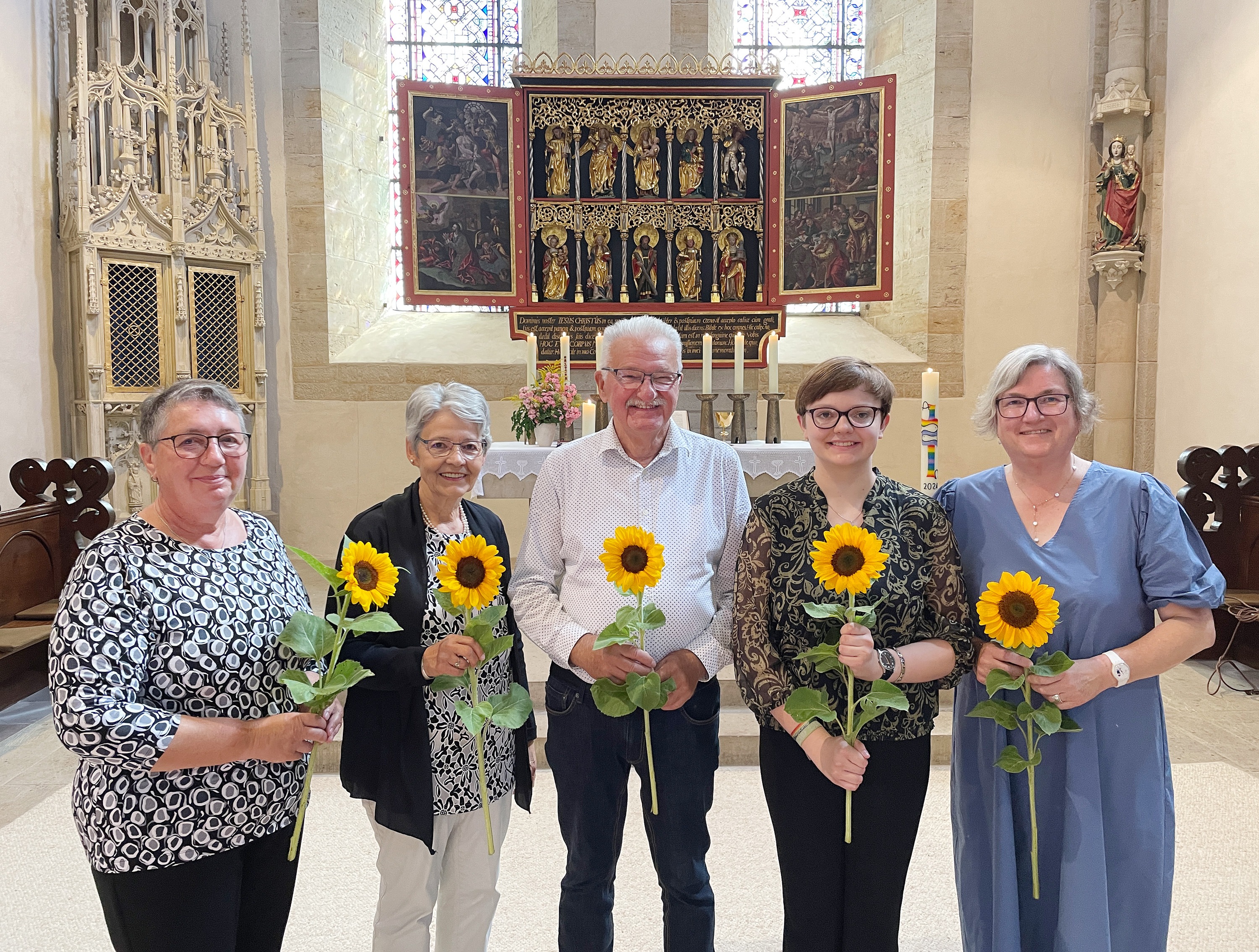 Verstärkung beim „Lektorendienst“: Der Kirchenvorstand freut sich, dass sich ein kleines Team gefunden hat, das künftig im Gottesdienst mitwirken möchte. Fünf Ehrenamtliche werden hin und wieder die biblischen Texte lesen, bei der Austeilung des Abendmahls helfen oder bei anderen Aufgaben unterstützen. In einem Gottesdienst am 11. August wurden sie der Gemeinde vorgestellt und von Prior Arend de Vries für ihren Dienst gesegnet. Viele von ihnen sind „alte Bekannte“: Bärbel Augurzky, die ehemalige Vorsitzende des Kirchenvorstands, hat eine Ausbildung zur Lektorin absolviert. Viel Erfahrung bringen auch die früheren Kirchenvorstandsmitglieder Christine Breuer-Völkel und Wolfgang Brohs mit. RPI-Dozentin Kerstin Hochartz ist als Pastorin ohnehin „vom Fach“ und auch die Jüngste im Bunde, Paulina Engelmann (14), hat bereits als Konfirmandin Lesungen im Gottesdienst übernommen. Gern können weitere Interessierte das Team ergänzen.