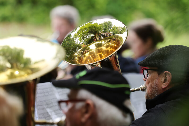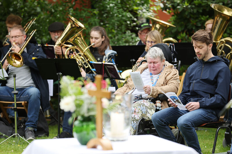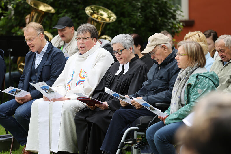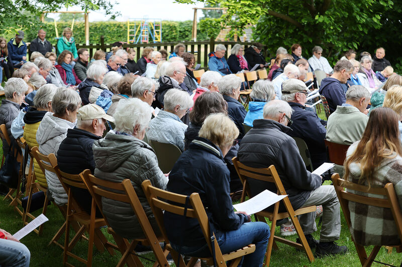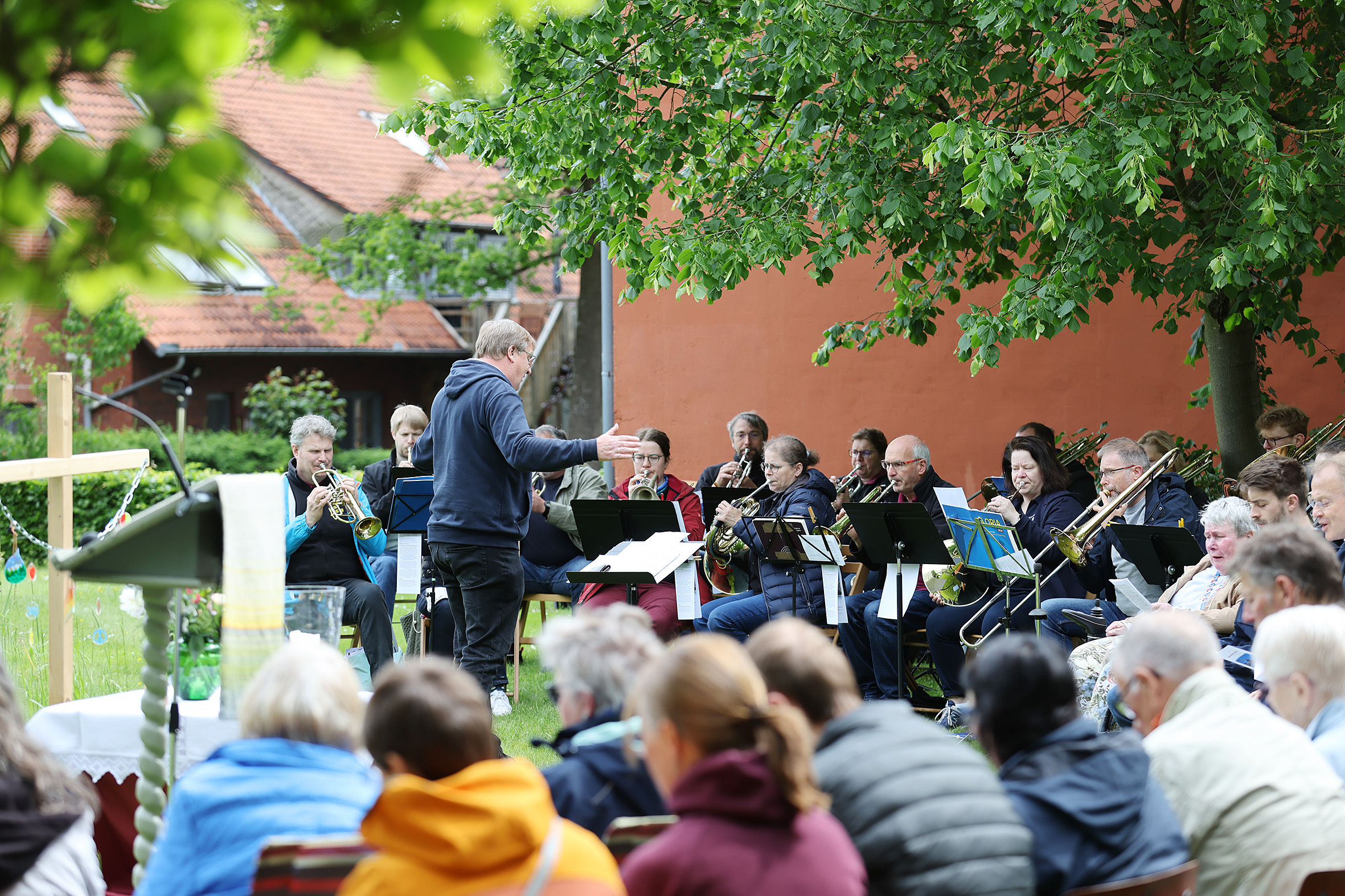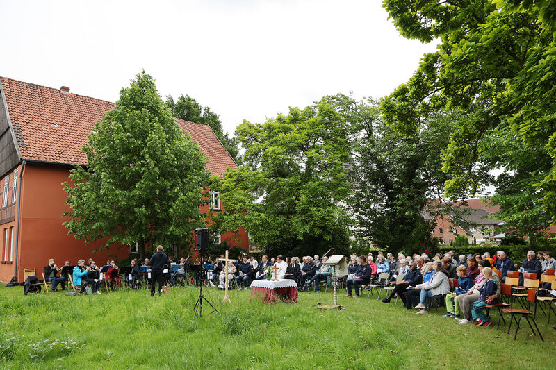 Schon von ferne lockten die Posaunenklänge: Bei stabilem Wetter feierte eine große Gemeinde im Garten des alten Pfarrhauses Wiedensahl einen Ökumenischen Gottesdienst zu Christi Himmelfahrt. Anlässlich des 750. Geburtstag der St.-Nicolai-Kirche lag es auf der Hand, dass sich evangelische und katholische Besucherinnen und Besucher aus Loccum, Münchehagen, Rehburg und der gastgebenden Gemeinde dieses Jahr in Wiedensahl zum Regionalgottesdienst trafen.